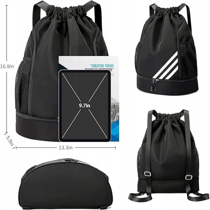 ⚾ 【Дизайн із кількома кишенями】:Бічні сітчасті кишені з еластичними ременями з обох боків рюкзака спортивної сумки можуть утримувати воду пляшки і парасольки; передня кишеня вміщує серветки та туалетні приналежності; Внизу є окрема шафа для взуття. Крім того, всередині мотузкової сумки є додаткова внутрішня кишеня на блискавці, яка є достатньо великою, щоб умістити невеликі цінні речі, такі як спортивні годинники та гаманці, щоб уникнути кишенькових злодіїв.