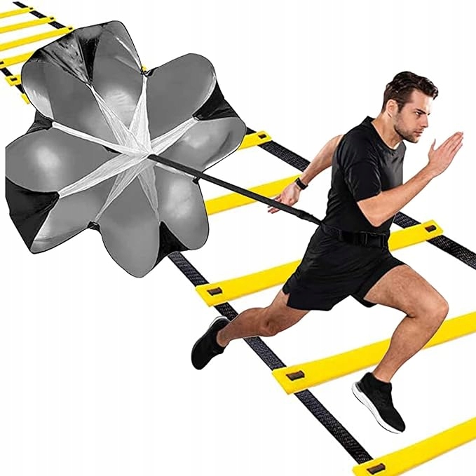 - ✔️ Парашут створено для створення сильного опору вітру, що є дуже ефективним для збільшення швидкості спринту та отримання максимальної вибухової сили. . Регульований пояс застібається на кнопки та може бути відрегульований до 42 дюймів.