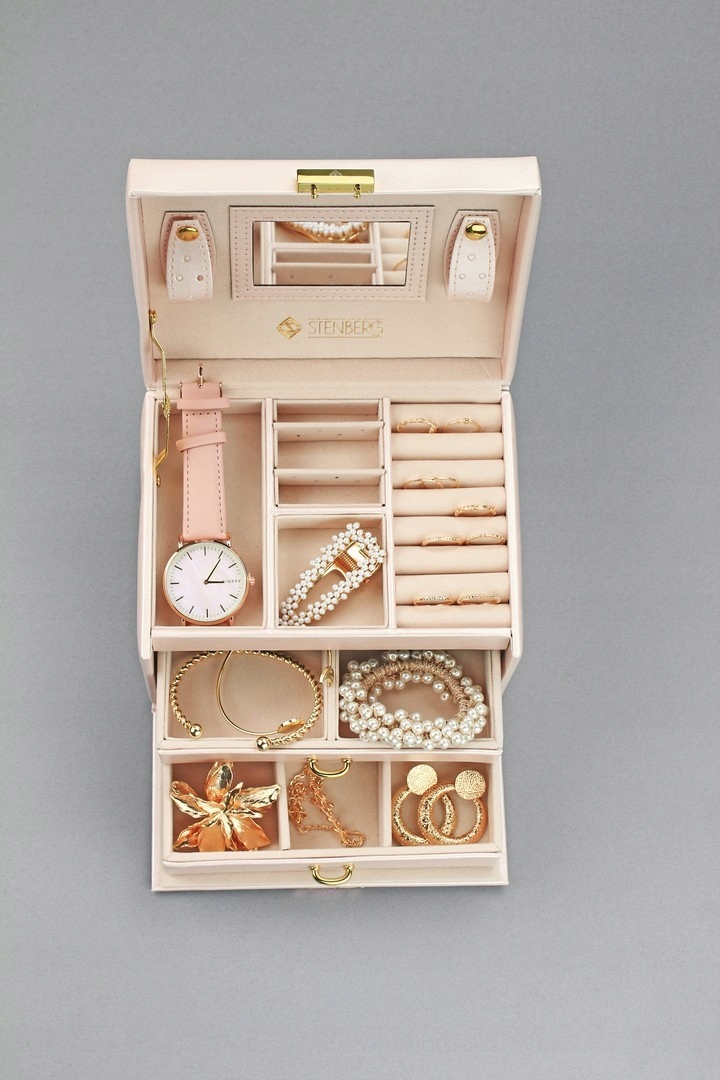 Це надзвичайно практичний і дозволяє систематизувати та захистити велику кількість прикрас від пошкоджень. Тут знайшлося місце каблучкам, сережкам і кольє.