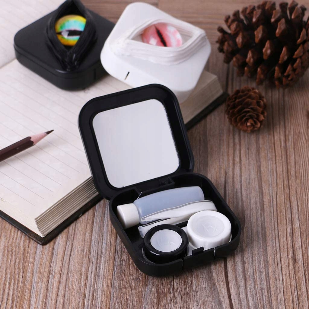 Коробка для контактних лінз — обов’язковий аксесуар для зберігання контактних лінз. У коробці коробка для лінз, стік, флакон і дзеркало. Невеликий розмір, легкий для транспортування дизайн з вигадливими та унікальними очима. Портативний, міцний і простий у зберіганні. Контактні лінзи можна вставляти та знімати з очей на вулиці за допомогою дзеркала, що входить у комплект.