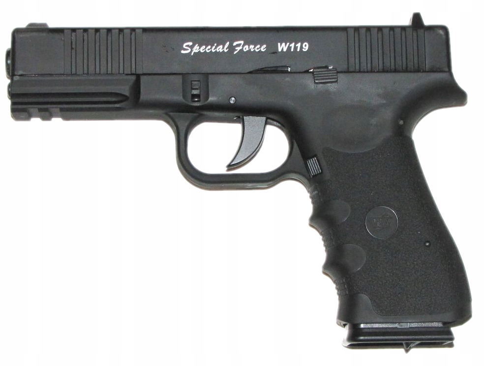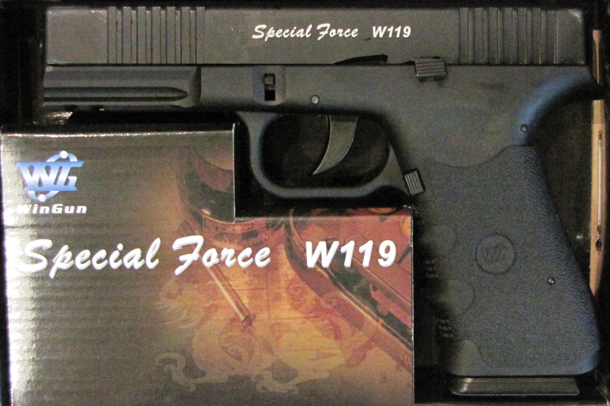 Пневматичний пістолет Special Force W119 від WINGUN є копією, виготовленою з армованого композиту. Він виготовлений на основі відомої моделіGlock G19. Весь вузол ствола з рухомим затвором виготовлений з металу.