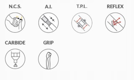 Більше того, для забезпечення більш високого рівня безпеки на матеріалі стіків розміщені спеціальні світловідбиваючі вставки. Нарешті, міцний і стійкий CARBIDE вольфрамовий наконечник забезпечує відмінне зчеплення на будь-якій місцевості. Додатковою перевагою моделі є система Anti-Impact System, яка гасить і поглинає неприємні коливання від землі.