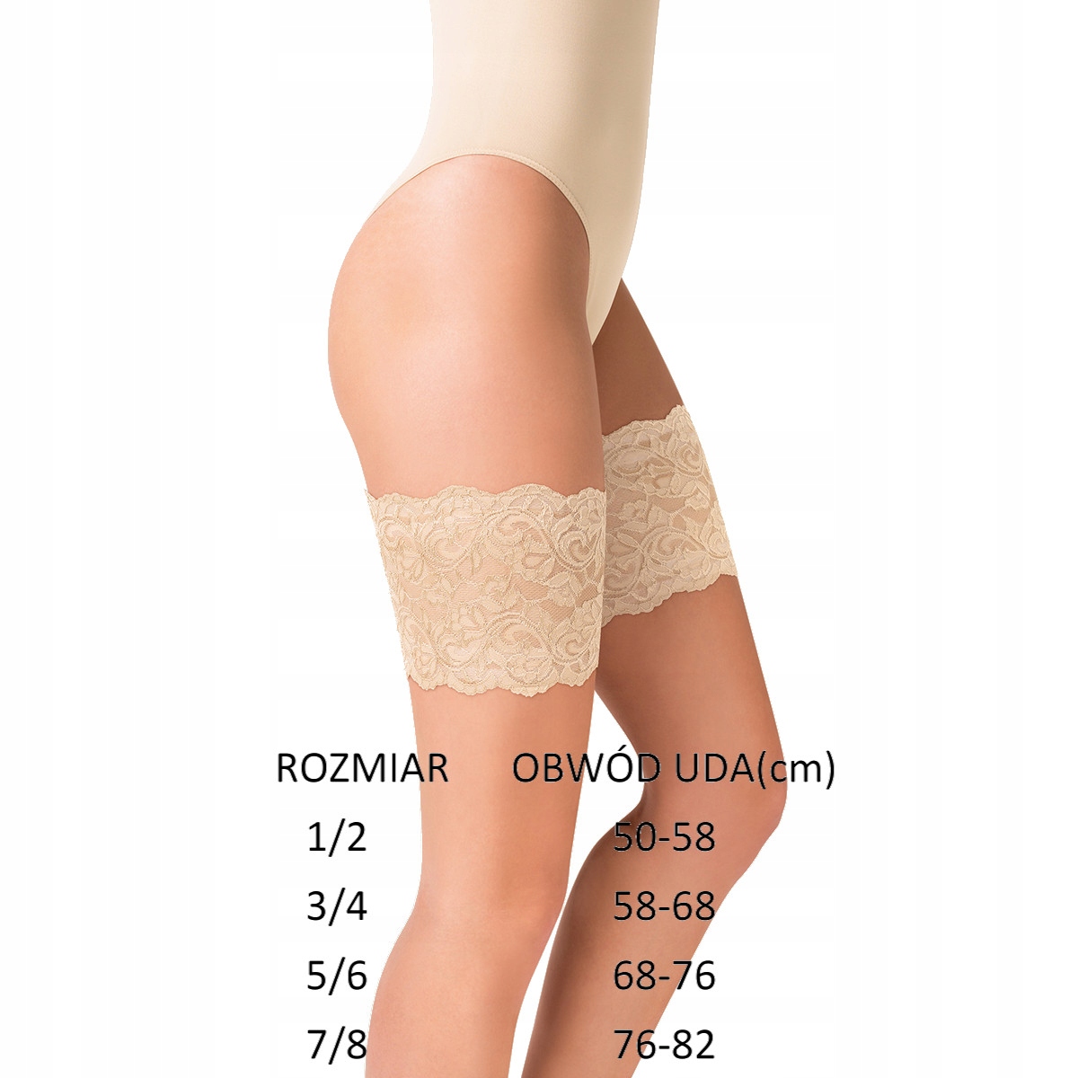 Самотримаюча декоративна пов'язка на стегнах - модна альтернатива колготкам або панчохам для спекотних літніх днів. Широкий (15 см) мереживний пояс із силіконовими смужками всередині утримує стегнову стрічку на місці. Мереживна облямівка забезпечує комфорт і зручність носіння, запобігає потертості і почервоніння, ефектно прикрашаючи ніжку.