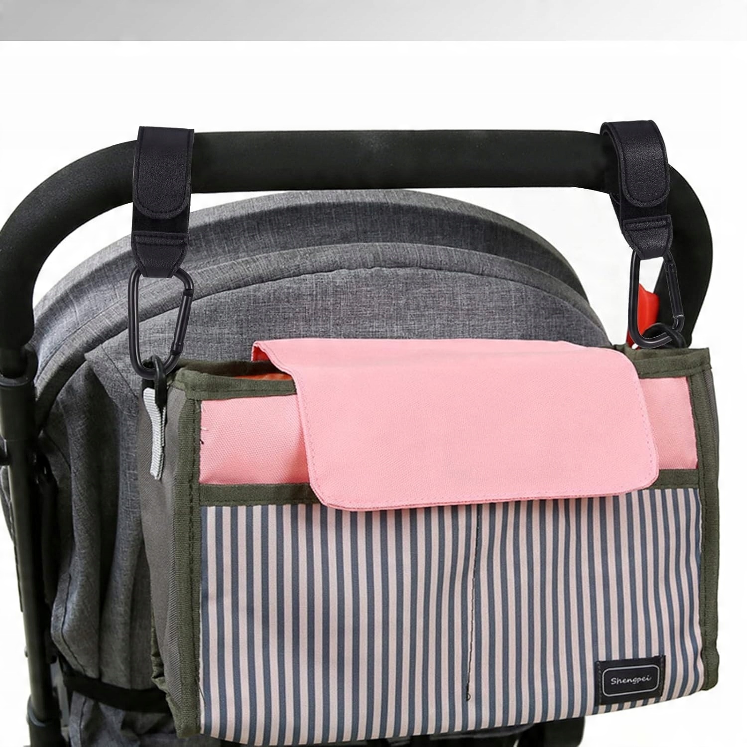 · комфортне життя : повісити сумку в колясці, і вам не доведеться згинатись, щоб увійти в місце для зберігання під сидінням коляски. Кліп можна легко відкрити та закрити та перенести з колячки на машину або кошик для покупок.