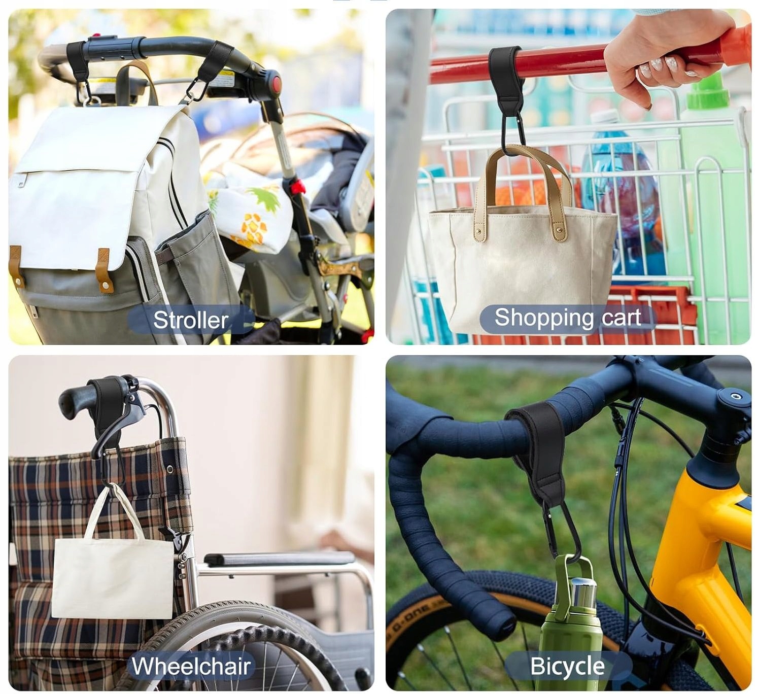 · Матеріали високої якості : поїздки з імітації шкіри та карабіну виготовлені з нержавіючої сталі, що робить її красивою, надійною, міцною та міцною гачком для коляски. Куртка і т. Д. Також підходить для автомобілів (кріпиться до підголівника), інвалідних візків, ходунків, візків, велосипедів, собачих повідок тощо