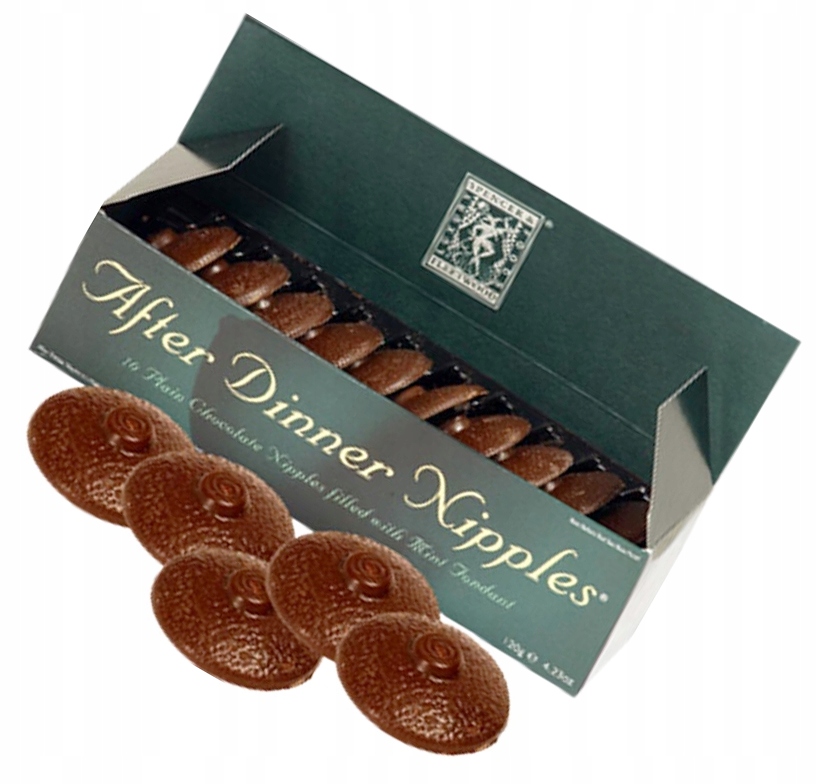 Смачна та пізна закуска як на післяобід, так і для особливих моментів лише для двох. Кожна шоколадка - ідеальне зображення жіночих сосків, наповнених смачним м'ятним кремом. Вам обов'язково сподобається приймати їх всередину в будь-який час дня і ночі. В упаковці десять круглих шоколадних цукерок, які чудово задовольнять вашу ласунку.