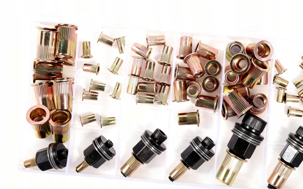 Набір включає: 60 штук заклепкових гайок у шести популярних розмірах: M3, M4, M5, M6, M8, M10.