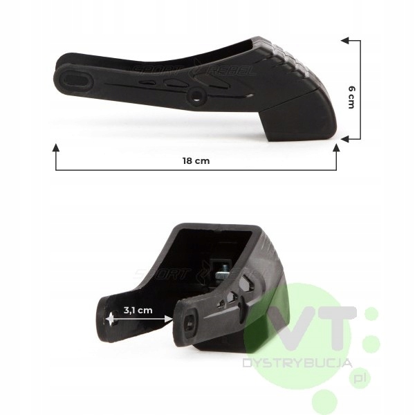 Гальмо можна прикріпити до полоза, де відстань між двома останніми колесами становить від 72 до 82 мм.