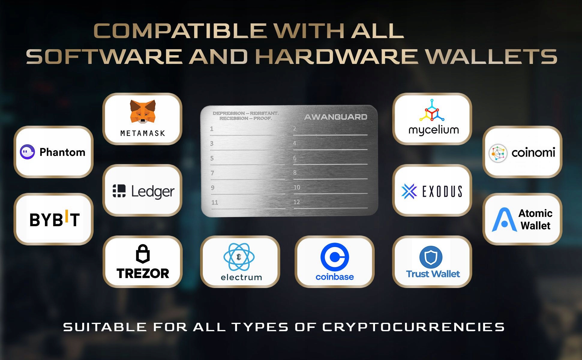 Гаманець Криптовалют AWANGUARD -2 Сталеві Носії Даних, Seed Phrase Резервний Резерв