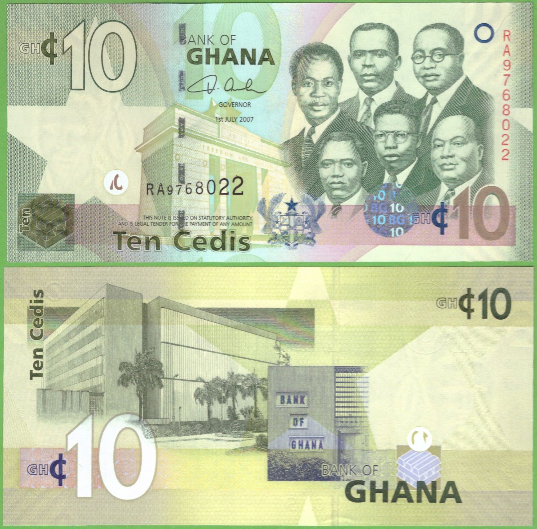 ГАНА 10 CEDIS 2007 P-39a UNC PREFIX RA