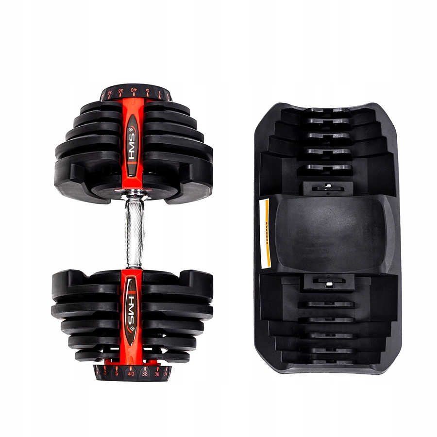 ♦️ SR80 HMS – це регульована гантель. У комплект входить гриф, 10 тарілок і підставка. Пристрій є ідеальним рішенням для людей, які займаються вдома, але він також добре працюватиме в тренажерному залі, замінюючи всю стійку традиційних гантелей.