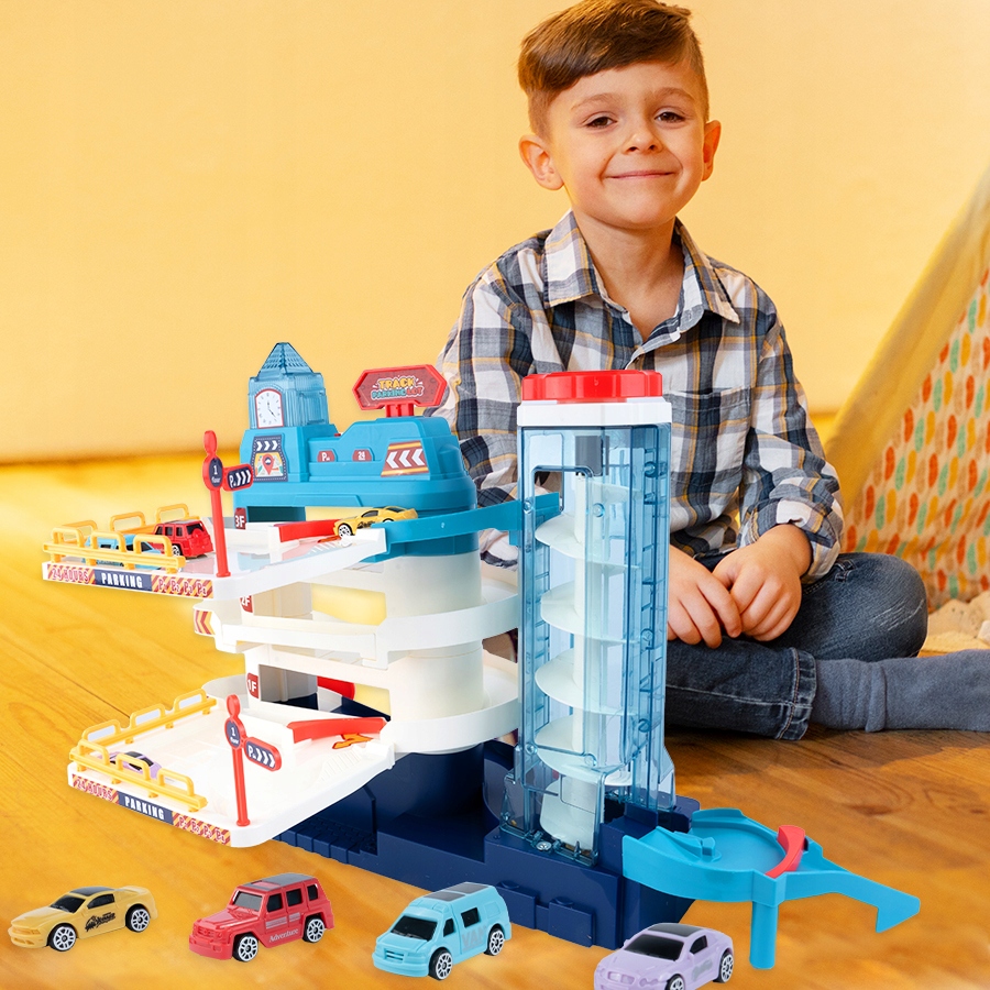 Стоянка має гірки, електричний ліфт, пересувні шлагбауми, інформаційні покажчики, автомобілі та табло. Діти можуть перекривати дорогу, паркувати машини та ковзати по спіралі, розігруючи захоплюючі сцени зі світу автомобілів.