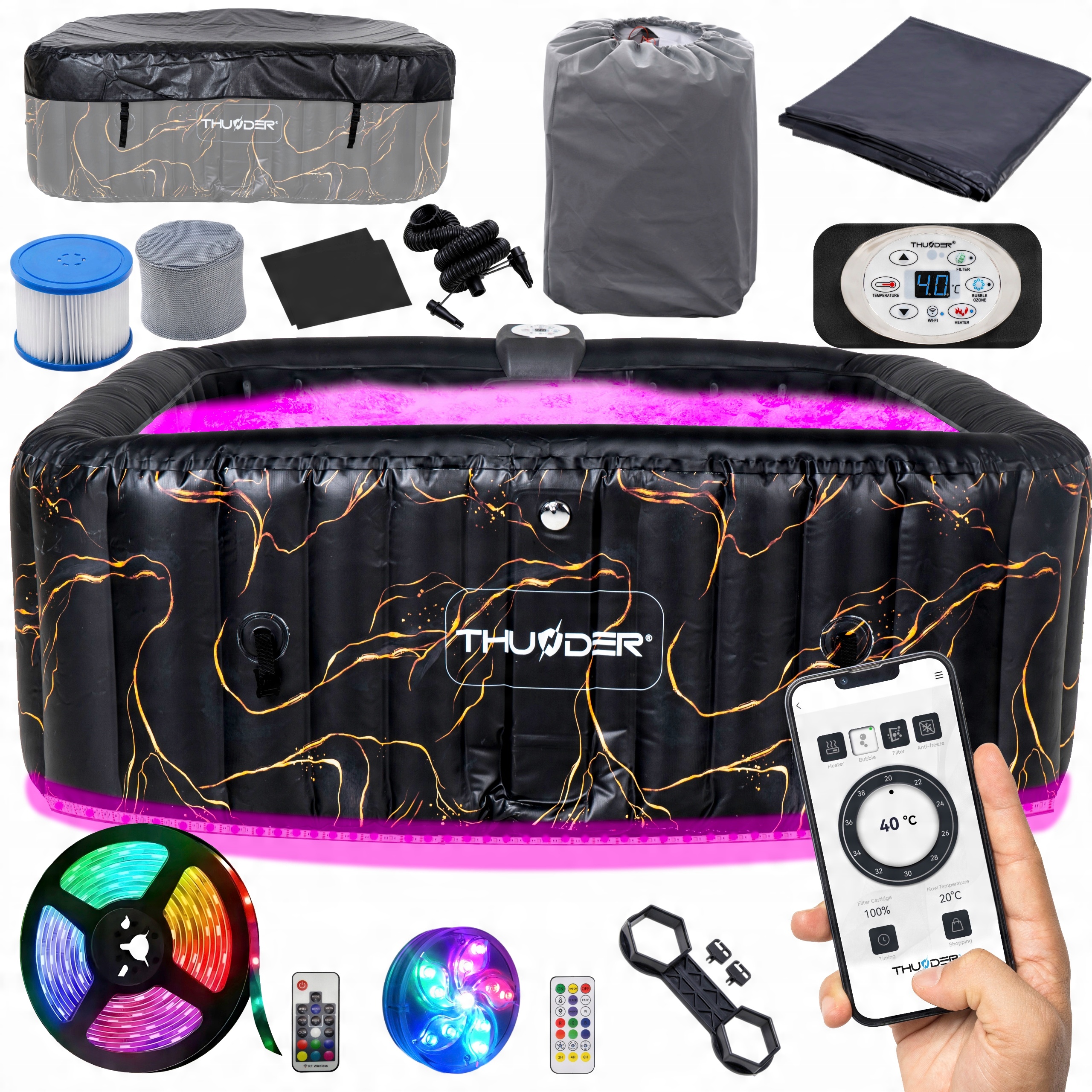 Надувний SPA від ⚡️THUNDER®️⚡ був збагачений багатьма функціональними аксесуарами, які полегшують щоденне використання ванни та адаптують її до ваших потреб!