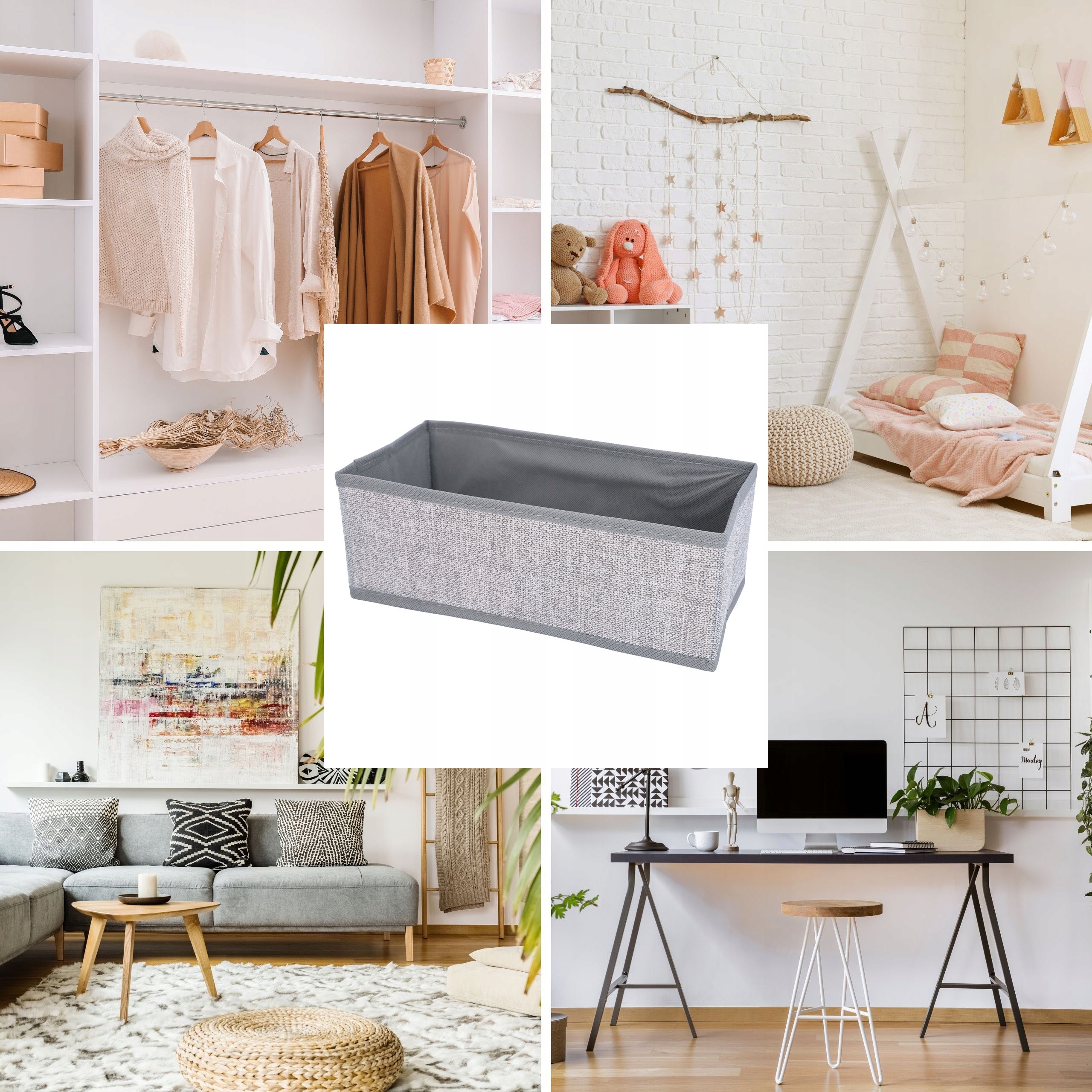 Набір текстильних органайзерів є синонімом елегантності та порядку. Ці два контейнери, розміри яких ідеально підходять для більшості шаф і ящиків, є гарантією чудової організації простору.