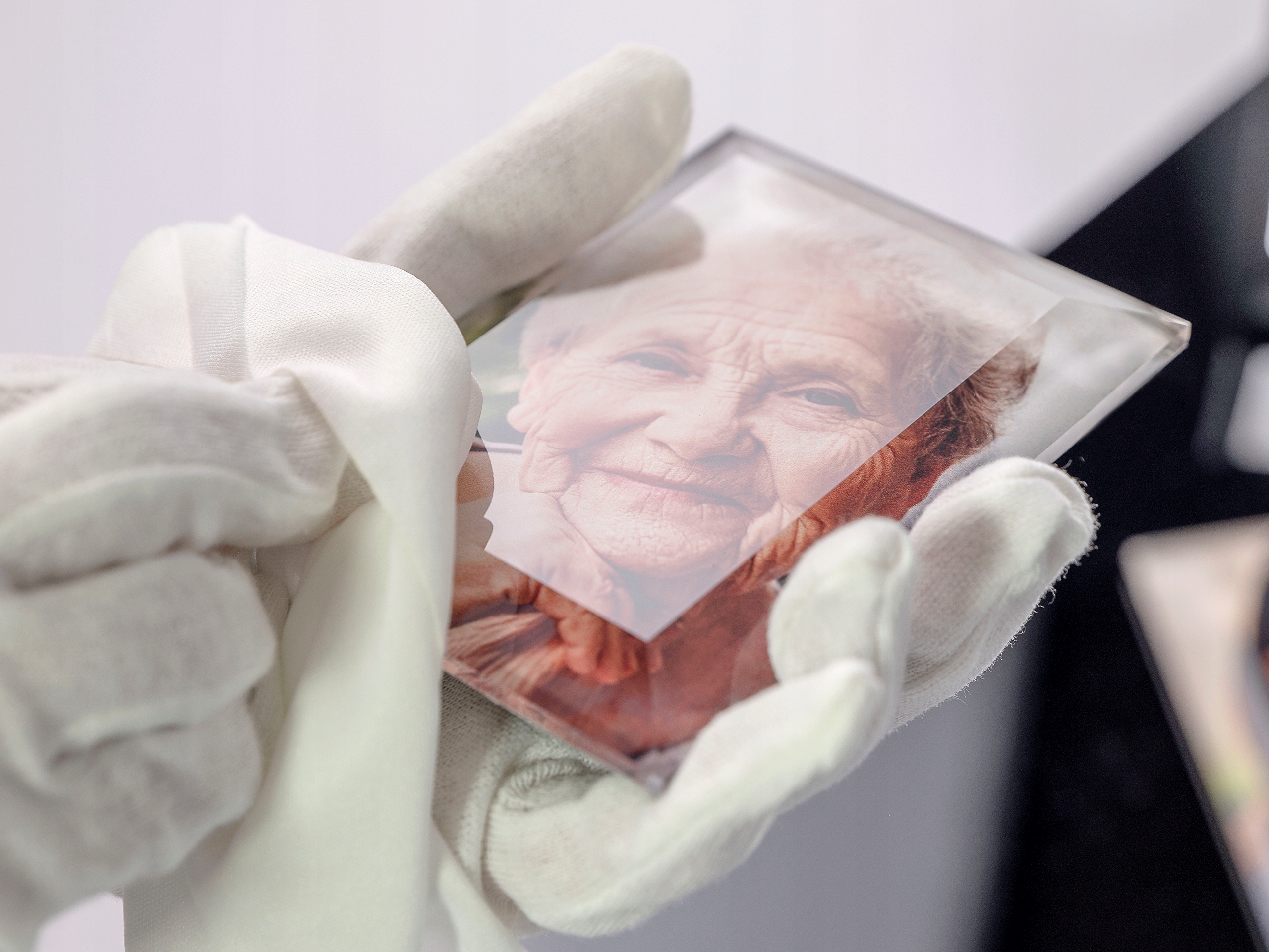 Наші фотографії на склі зроблені з шліфованого скла Opti White, додатково в цьому випадку скло скошене по краях, що дає тривимірний ефект. Завдяки цьому скло виглядає гідно і красиво виглядає на кожному пам'ятнику.