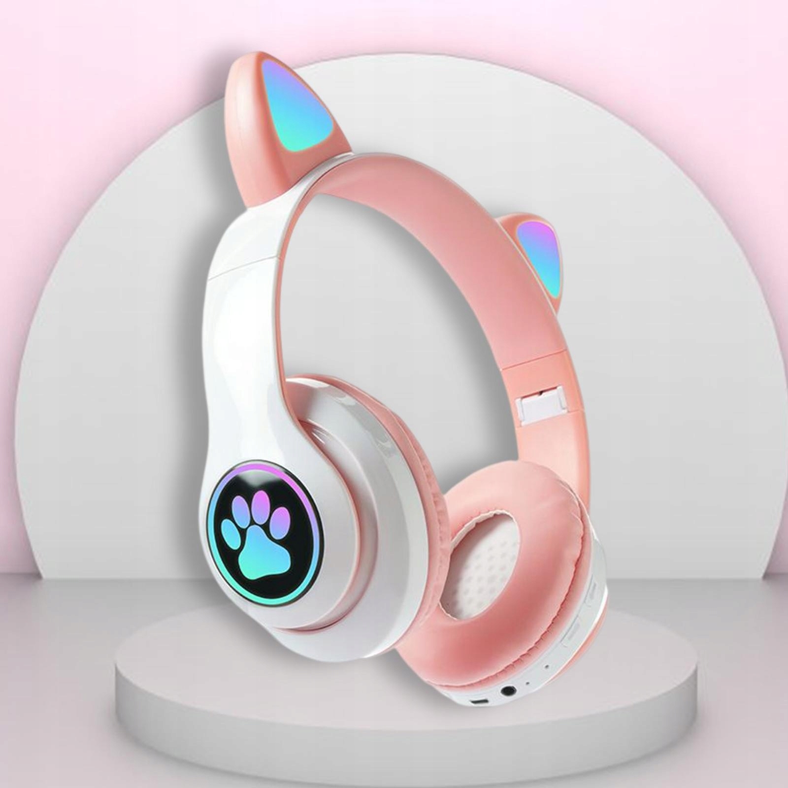 Навушники для навушників Cat Earfones для ігор з освітленням RGB для телефонів планшет ПК рожевий та білий