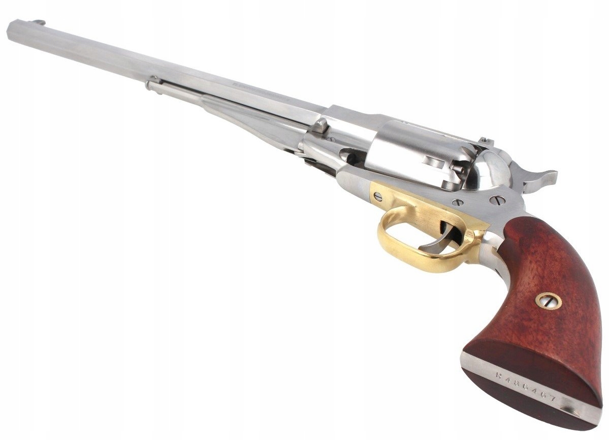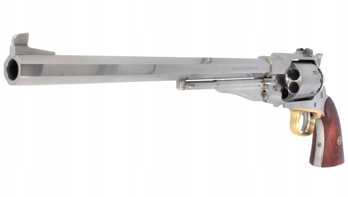 Remington 1858 New Model Army Inox .44 шестизарядний чорний пороховий револьвер з нержавіючої сталі сталева версія - забезпечує відмінний захист від корозійних властивостей продуктів згоряння чорного пороху. Дульнозарядна копія одного з найвідоміших ударних револьверів Remington. Закритий сталевий каркас і ретельне виготовлення впливають на точність і повторюваність пострілів.