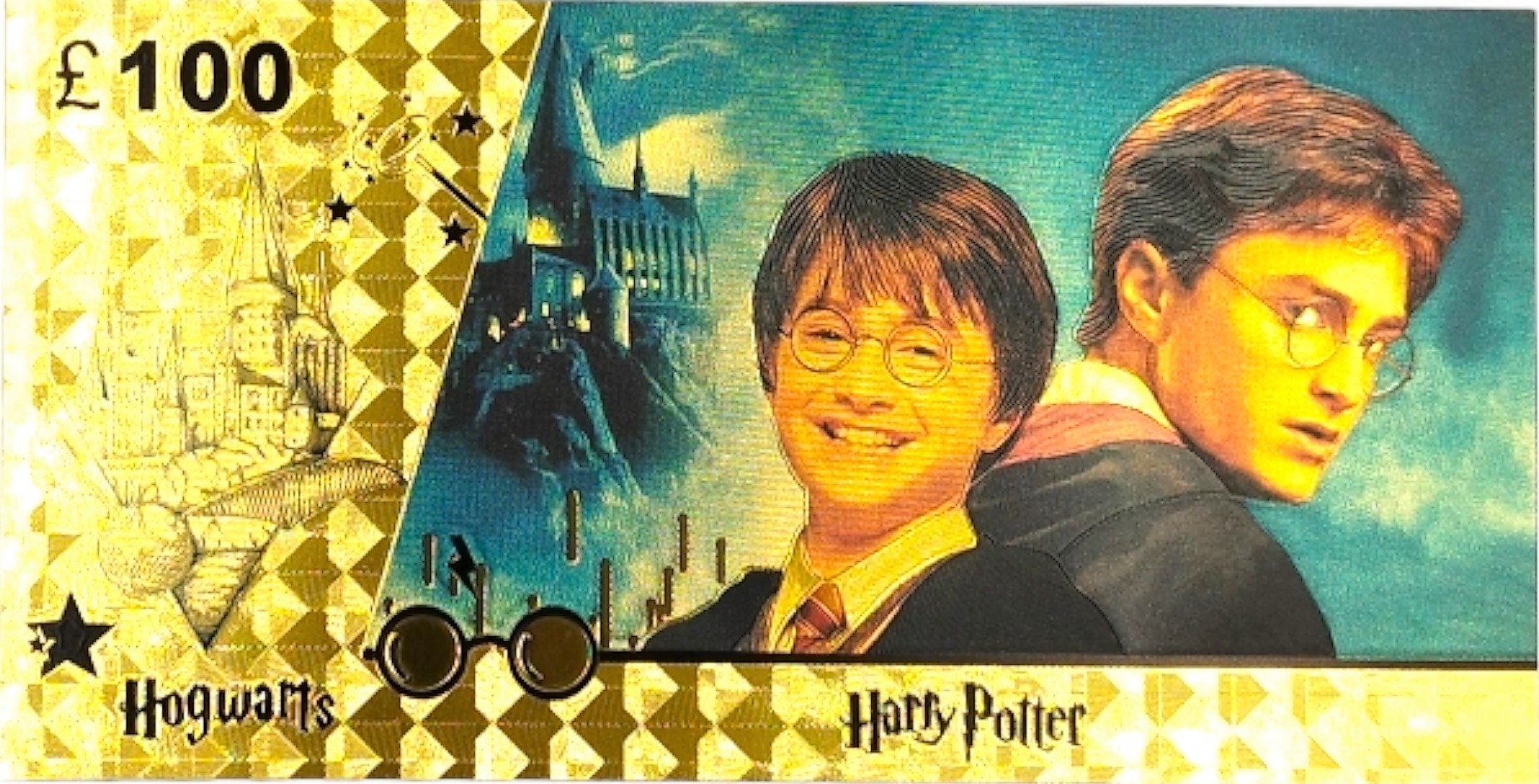Гаррі Поттер 100 фунтів красива позолочена банкнота