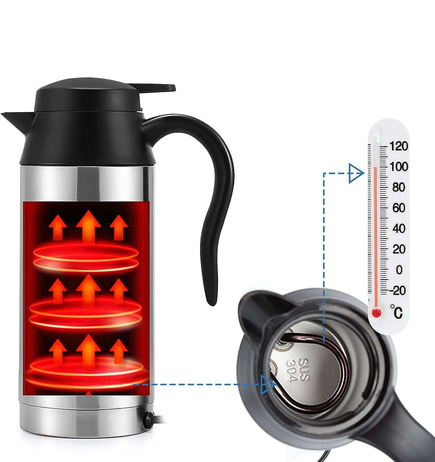 } 【Практичний чайник для подорожей】: електричний чайник потужністю 750 мл, необхідний інструмент для подорожей для більшості ручок. Цей чайник автомобіля завжди може підтримувати теплу каву/чай.