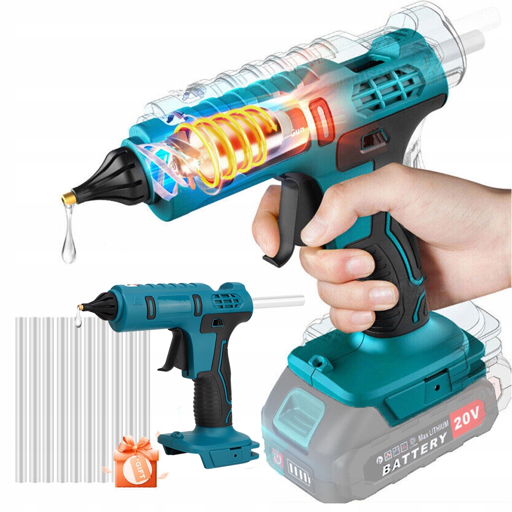 високотемпературна склеювання пістолета з напругою 18 В / 20 В і час нагрівання 3-5 хвилин при 150 ℃-ідеальний помічник у проектах саморобних робіт. Максимальна температура - 250 ℃. Технічні характеристики клею в палиці - φ11 мм, а специфікація клею - φ3 мм. Завдяки швидкості склеювання 12 г/хв він ідеально підходить для швидкого та ефективного склеювання. Підходить для широкого спектру програм DIY.