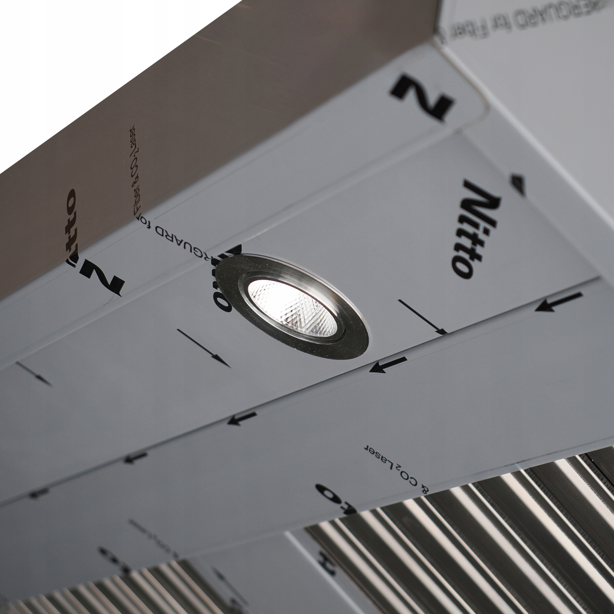 Стандартно витяжка оснащена вбудованим 4xLED підсвічуванням потужністю 5 Вт, що дозволяє добре освітлювати робочу поверхню на кухні. Крім того, він має встановлений на заводі клапан для зливу жиру, який полегшує утримання витяжки в чистоті.