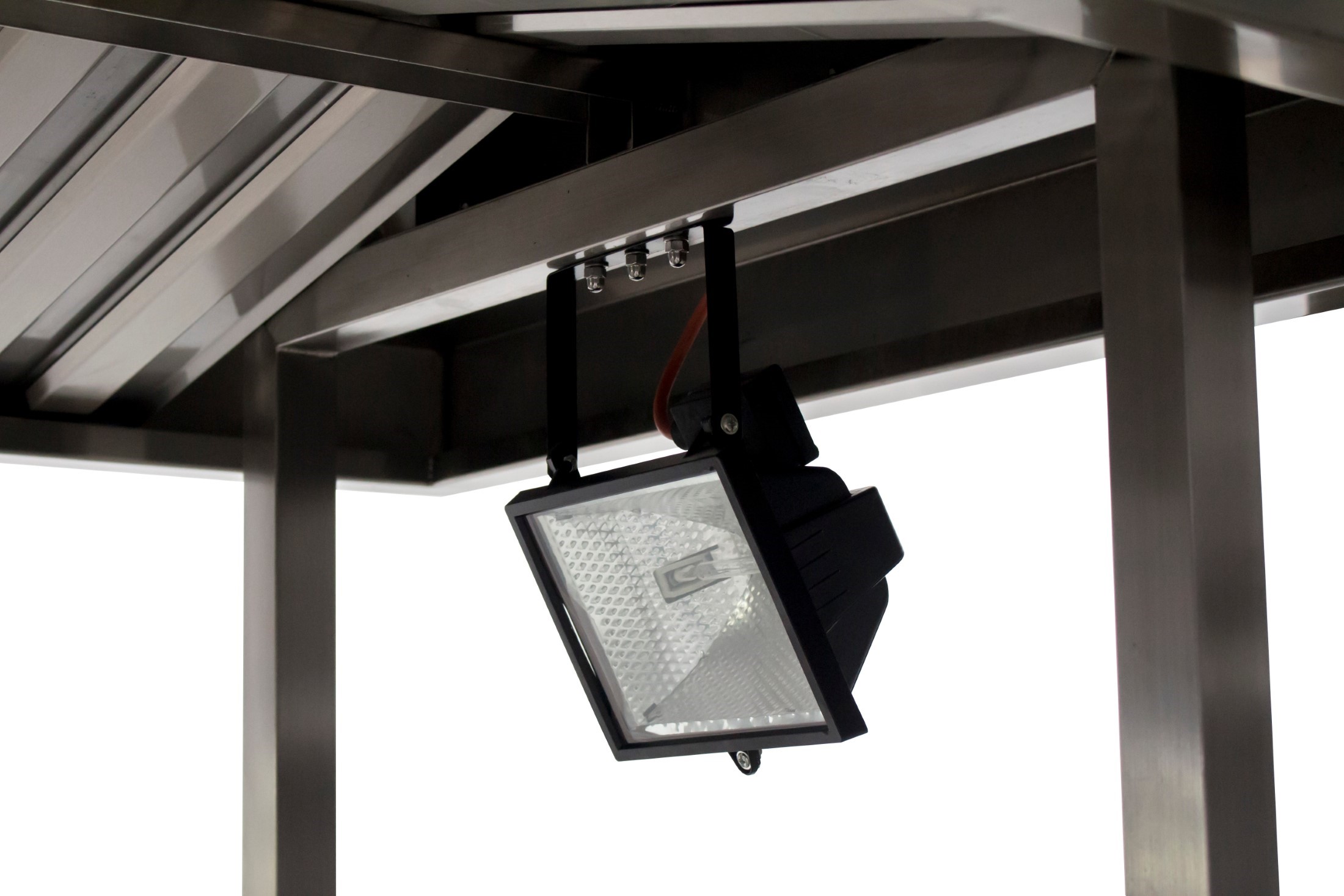 Завдяки 2 лампам , ми можемо використовувати гриль вночі, додаючи шарму завдяки теплому світловому кольору, який освітлює підставку з продуктами, що роздаються, створюючи дивовижну атмосферу.