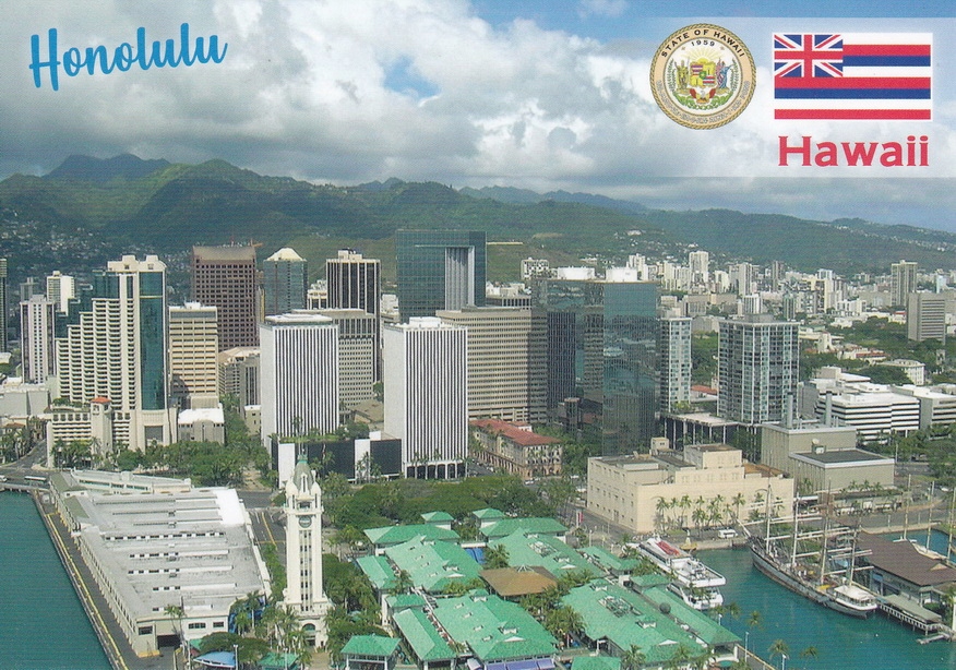 Гаваї - Гонолулу - з пташиного погляду - прапор. Немає ланцюга. Умова - дуже хороший. Видавничий дім колекціонера.