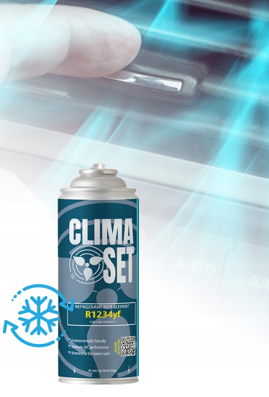 ClimaSet – це холодоагент, який є прямою заміною фреону, який використовується в системах кондиціонування повітря в більшості автомобілів 2016+.