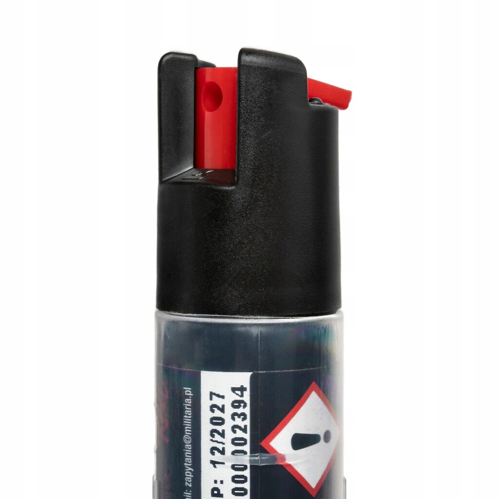 Перцевий спрей для самозахисту, розроблений спеціально для відлякування агресивних тварин, таких як собаки чи вовки. Потік газу, що досягає діапазону до 3,7 метрів, оптимізований для атмосферних факторів, таких як вітер або дощ. Це робить інструмент надзвичайно точним, ефективним і безпечним для користувача.