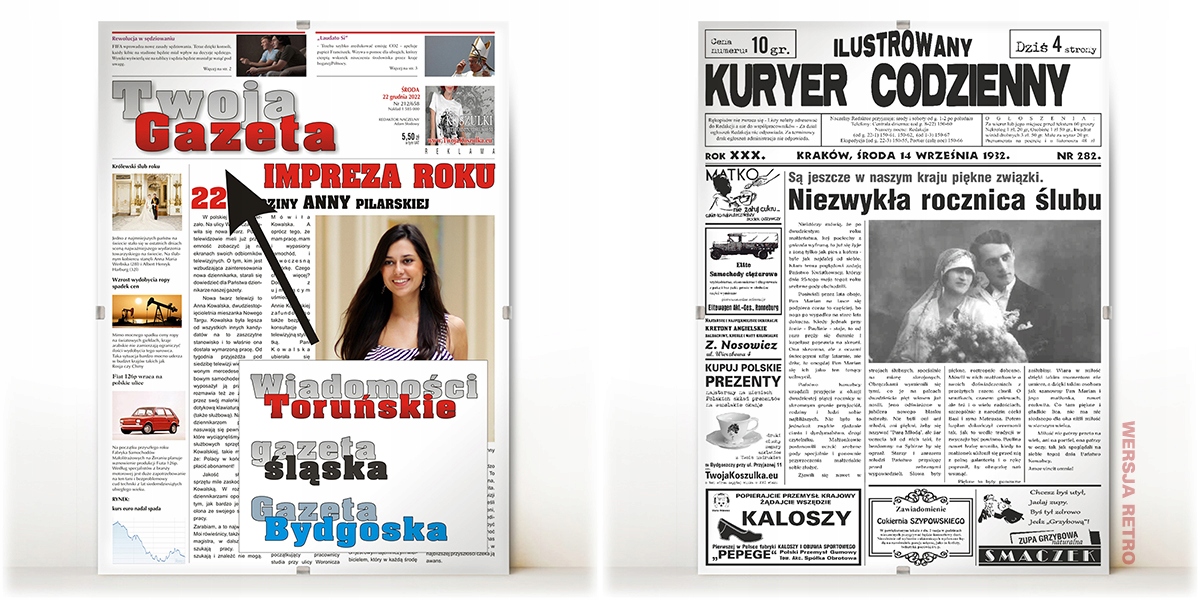 Просматривая «газета в рамке с вашим текстом и фото - много готовых текстов», вы можете быть уверены, что данный товар из каталога «Плакаты, фотографии» будет доставлен из Польши и проверен на целостность. В цене товара, указанной на сайте, учтена доставка из Польши. Внимание!!! Товары для Евросоюза, согласно законодательству стран Евросоюза, могут отличаться упаковкой или наполнением.
