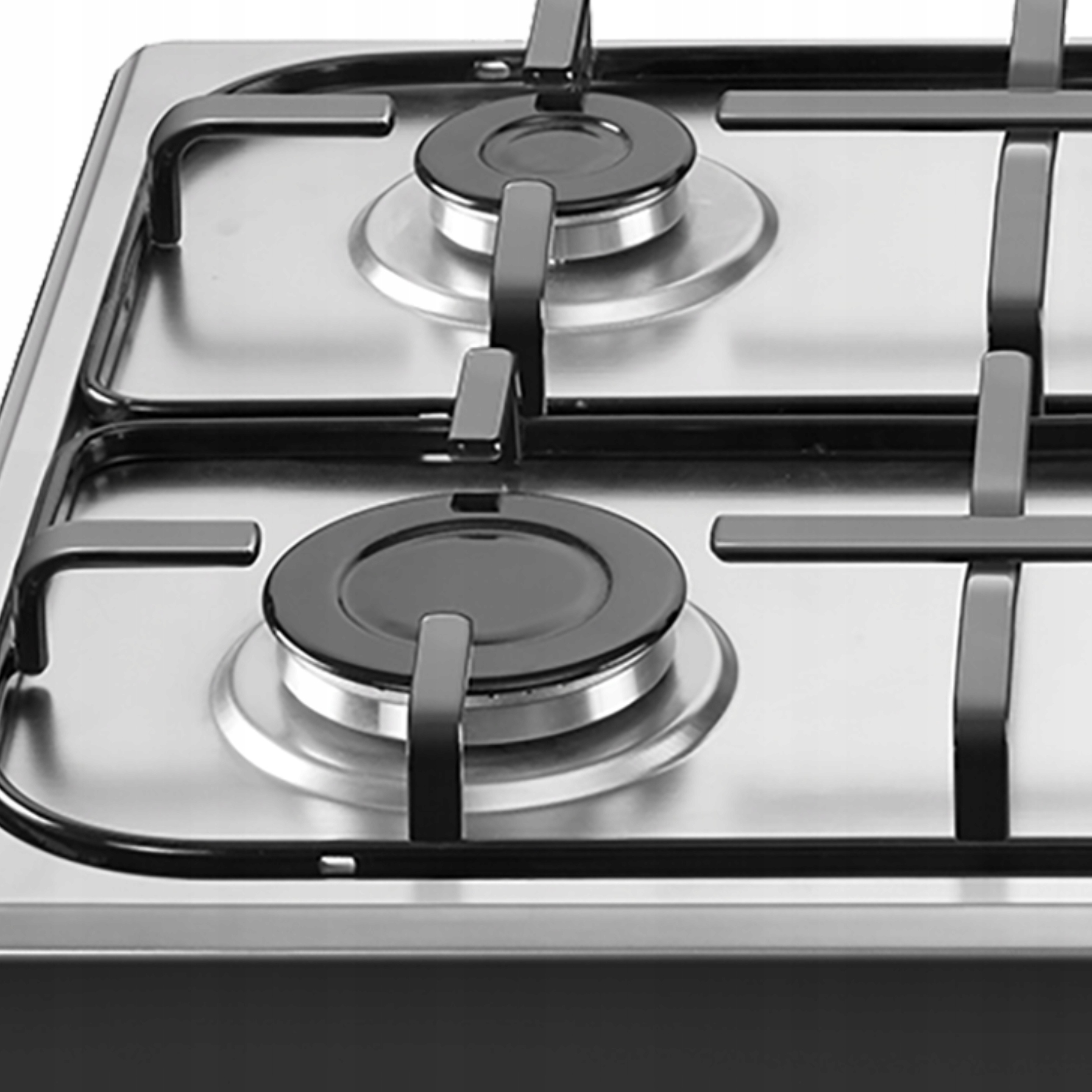 газова пластина з легшою в кольорі inox (нержавіюча сталь) та чорна емальована решітка та чотири пальники . З анти -vaulting.