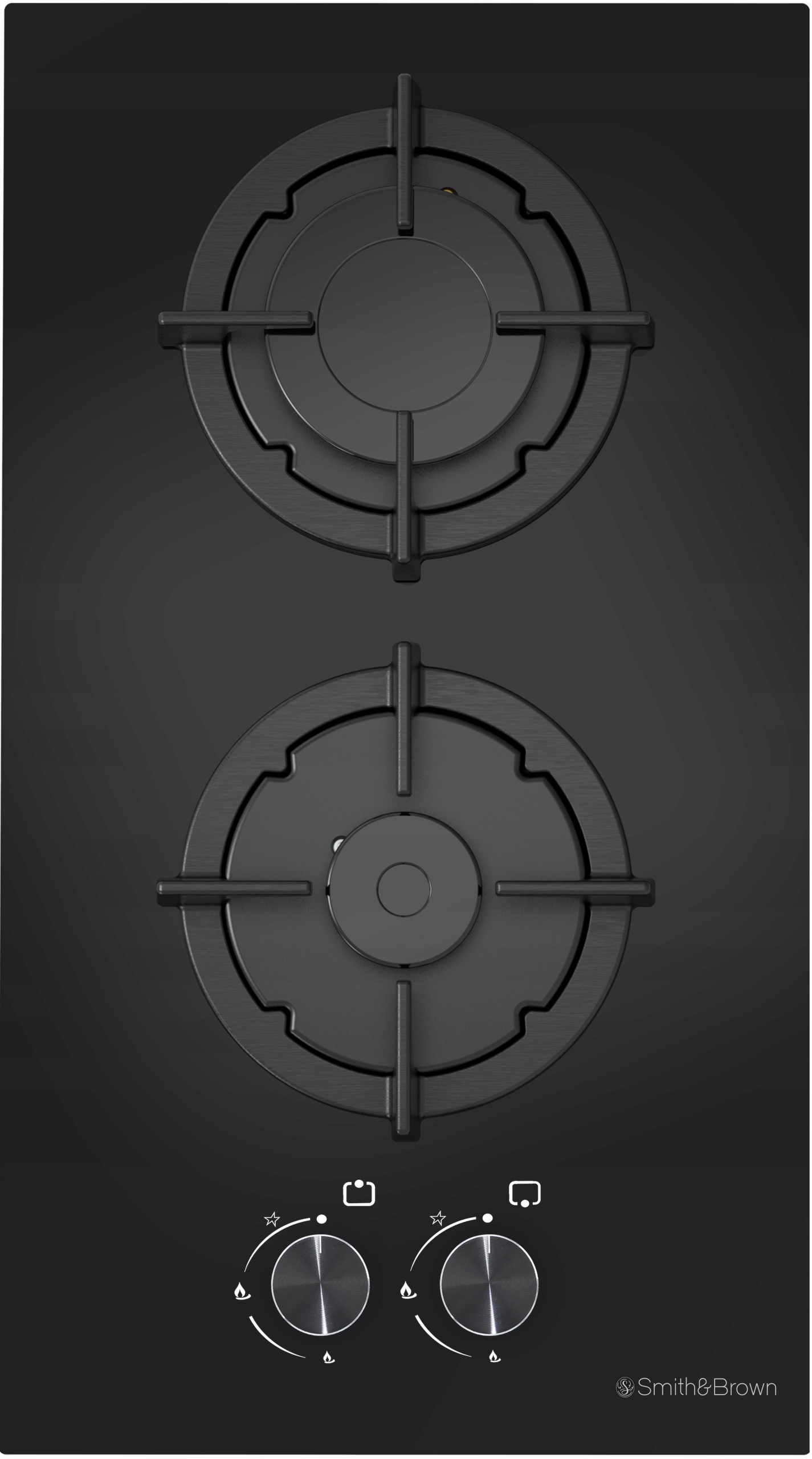 ► ВБУДУВАННЯ ГАЗОВА ВАРИЛЬНА ПАНЕЛЬ НА 2 КОНОРИ, ЧОРНЕ СКЛО ◄