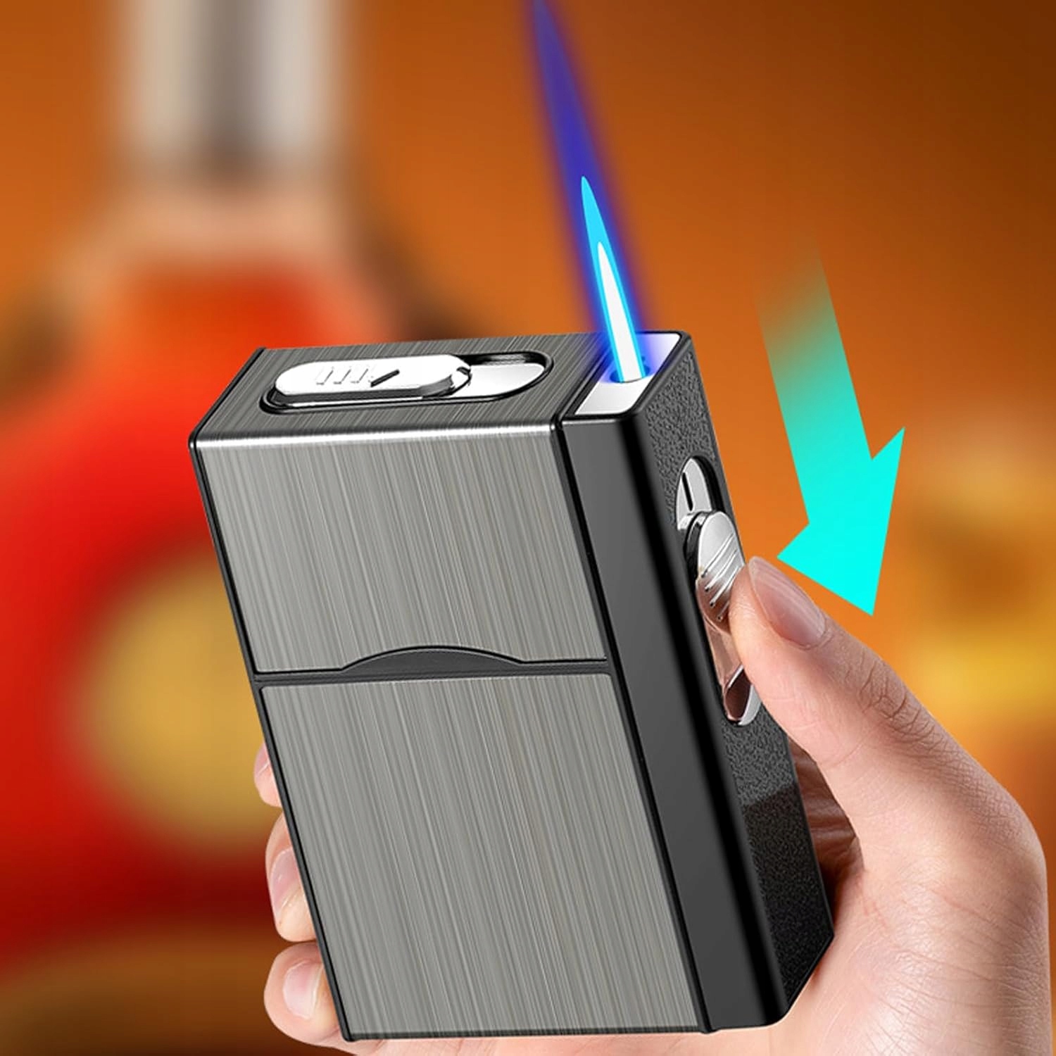 💥1. 【Вітрозахисна запальничка】Вітрозахисна запальничка в цьому портсигарі гарантує, що ви можете легко запалити сигарети навіть за вітряної погоди. Забезпечує надійний захист від вітру, підтримуючи стабільне полум'я та рівномірне горіння сигарет.