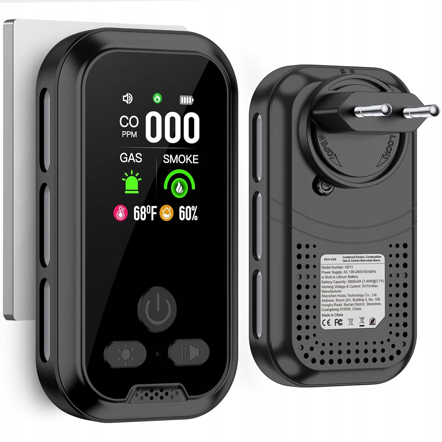 Детектор диму, газу та чадного газу Gedsffati з домашньою розеткою, датчиком чадного газу, датчиком CO, датчиком диму, датчиком горючих газів, для природного газу, метану, пропану, бутану, білий, HD11-CS, чорний колір.