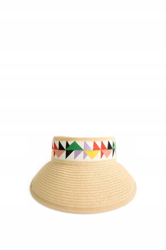 Жіночий дах на літо з декоративною, барвистою стрічкою з геометричними візерунками.