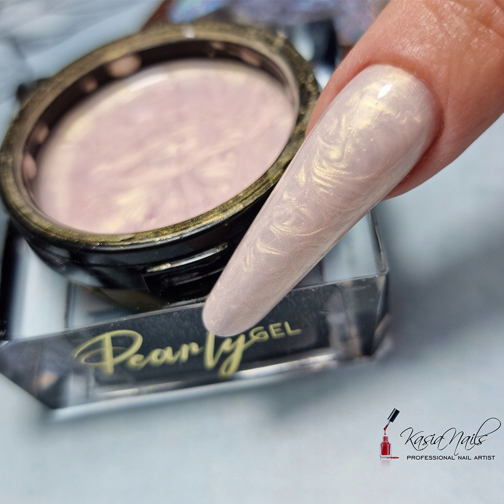 Pearly Gel - це гелі для нігтів нового покоління, консистенція середньої густини яких сподобається більшості стилістів. Інновація гелю полягає у формулі, збагаченій рідинною пам'яттю, та інтригуючому зовнішньому вигляді нігтя, що нагадує кварцовий камінь. Його можна порівняти з шампанським із танцюючими мікрочастинками.