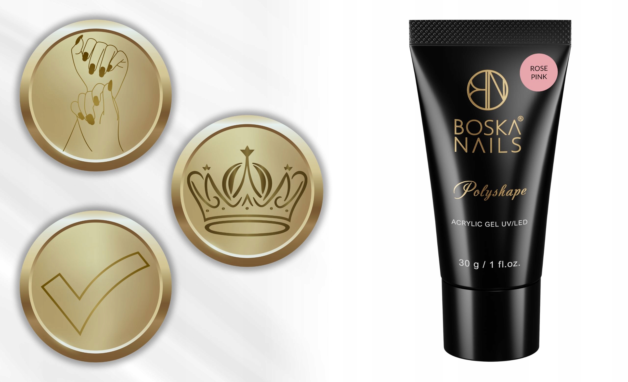 Рожевий акриловий гель Polyshapeє ідеальним вибором для людей, які шукають акриловий гель ніжного, приглушеного рожевого кольору. Його унікальна консистенція та колір роблять його основою для багатьох стилів. Він ідеально підходить для роботи з подвійними формами, а його міцність забезпечує тривалий ефект укладання, який радує око протягом багатьох днів.
