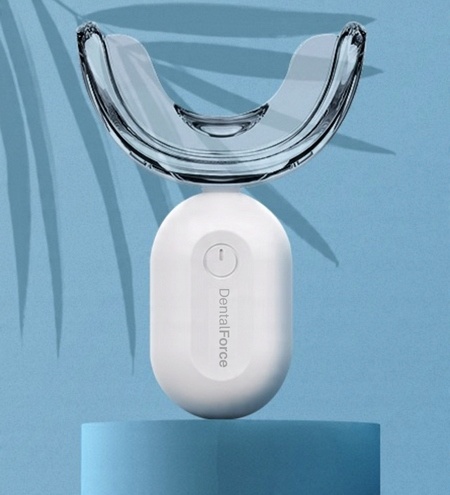 Для досягнення кращого та швидшого ефекту відбілювання зубів апарат оснащено технологічно сучасним відбілювальним гелем DentalForce. При денному освітленні відбувається окислювально-відновна реакція активних відбілюючих інгредієнтів. швидко міститься в препараті, що допомагає видалити різні види зміни кольору на зубах і між ними.