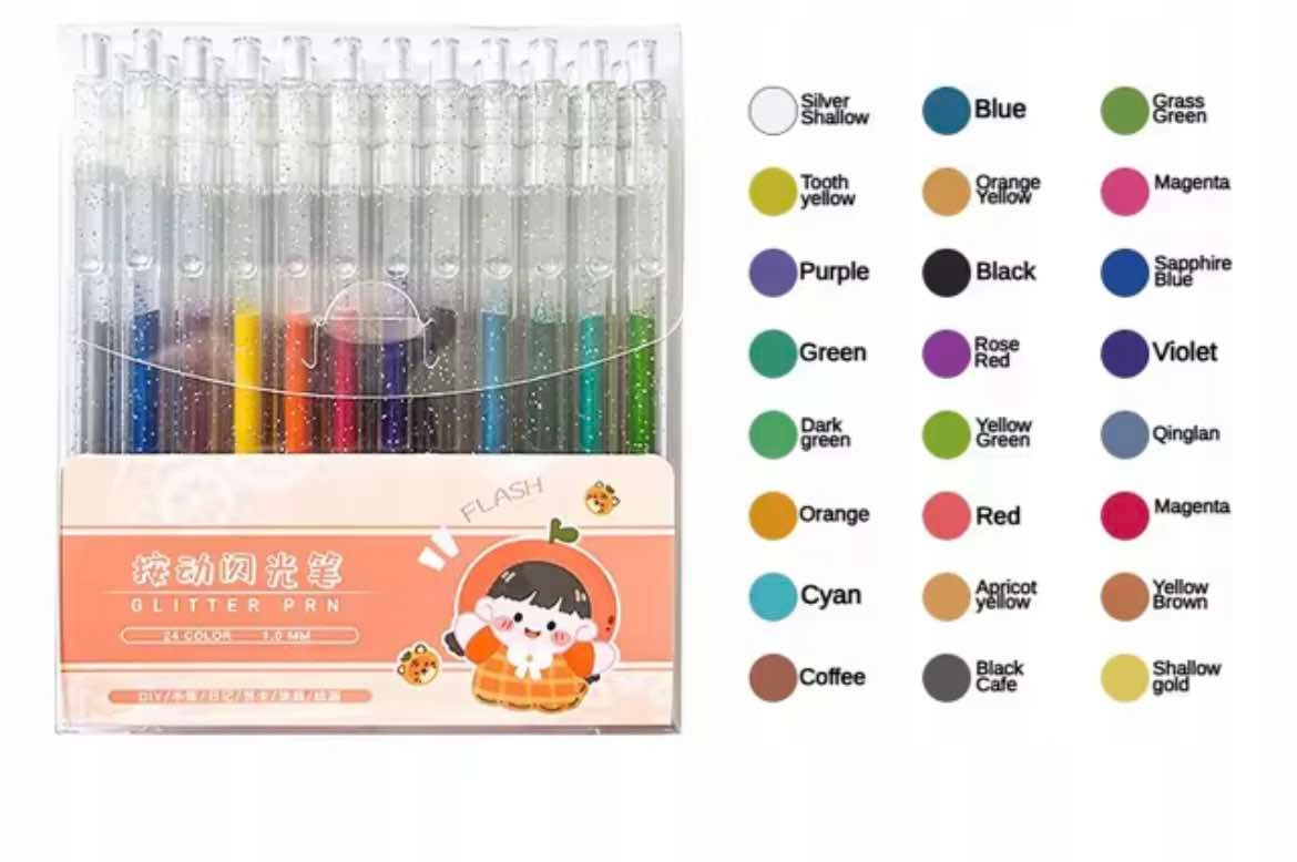 Ручки гелеві з блискітками 24 шт. барвистий набір для дітей 1,0 мм