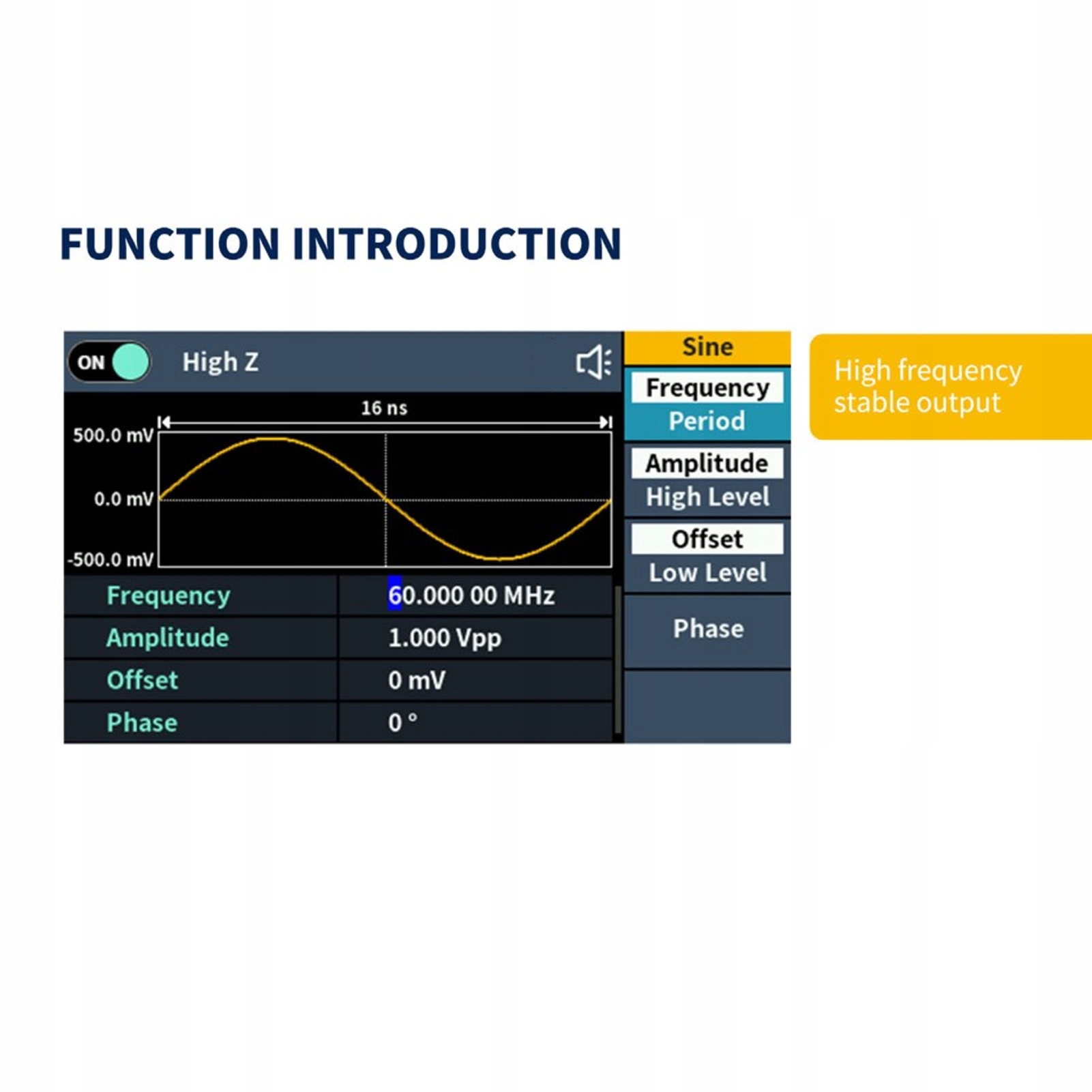 3. Детальні частотні характеристики. Генератор пропонує діапазон частотних характеристик від 1 Гц до 60 МГц із роздільною здатністю частоти до 1 мГц, що генерує різні форми сигналів і гарантує, що ваші потреби в сигналі завжди будуть задоволені.