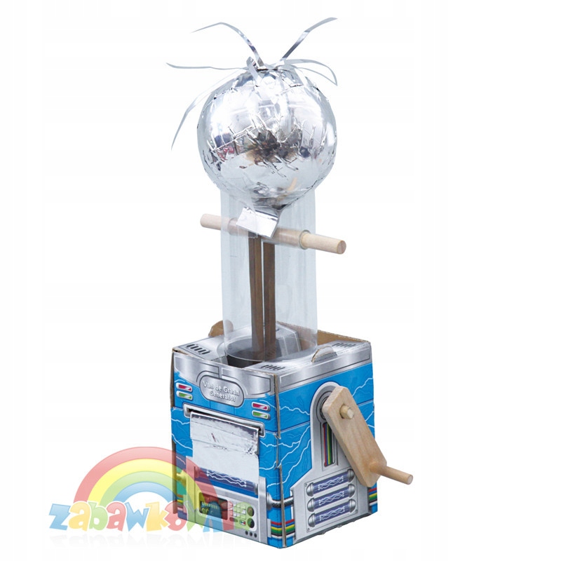 Відкрийте для себе явища, викликані статичною електрикою, яка генерується рухомим гумовим поясом і зберігається на пластиковій сфері з алюмінієвим покриттям. У вас буде можливість проводити такі експерименти, як піднімання алюмінієвих смужок, прикріплених до кулі, або світіння неонової лампи.