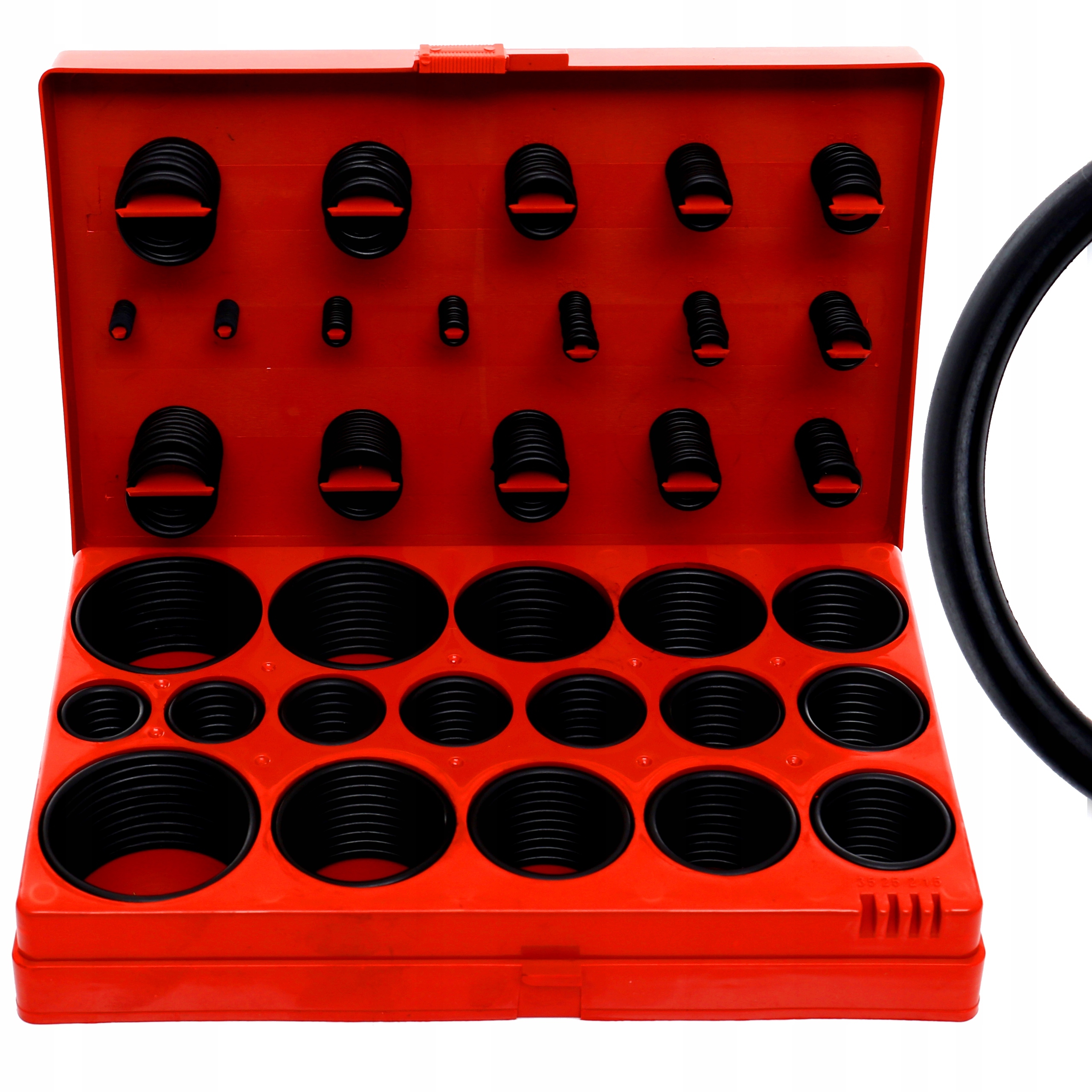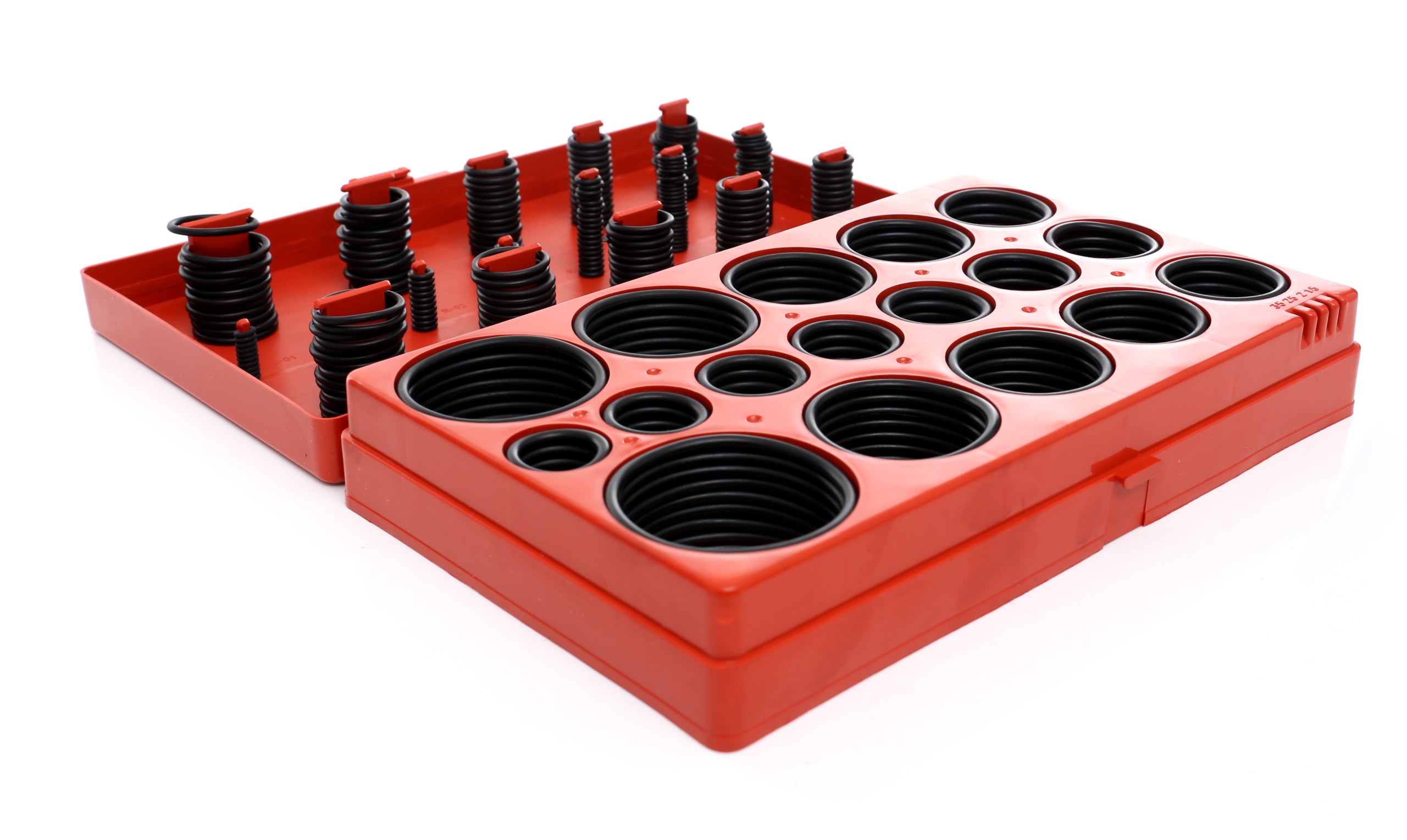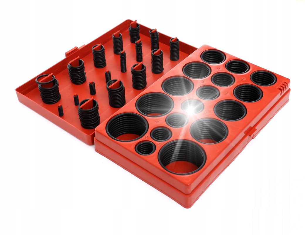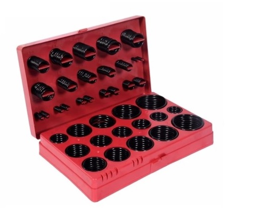 Універсальний набір, необхідний у кожному будинку, майстерні та гаражі. Стійкі до кислоти, бензину, нагрівання та олії, а також високої температури до +250 ° С використовуються для машин, що виконують роботу на хімічних фабриках, в автомобільній промисловості для ущільнення двигунів, нафтових резервуарів та паливних систем. Набір знаходиться в пластиковій валізі, де кожен розмір має своє місце. Кожен розмір описаний з відповідним символом.