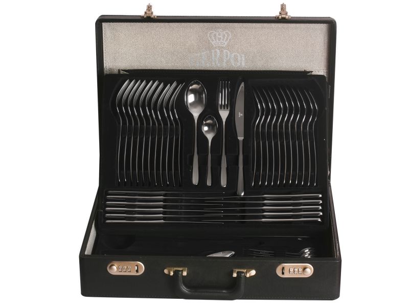 УПАКОВКА: валіза - всередині столові прибори упаковані темно-синіми флоками