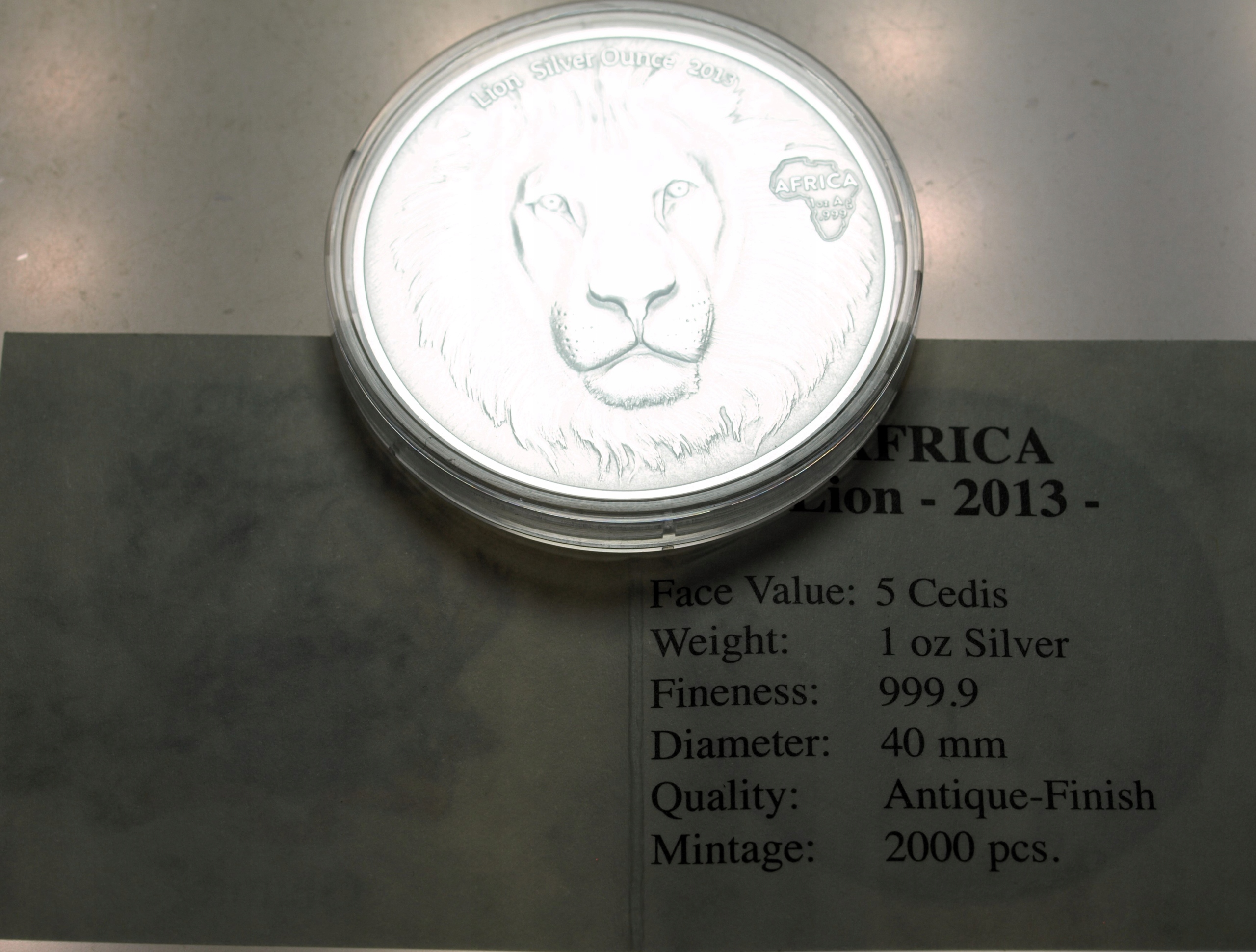 ghana 5 cedis 2013 Lion 1 унція срібла унції. Оригінал. Ознайомтеся з іншими аукціонами - збирайте рідкісні значення з Numismrato!