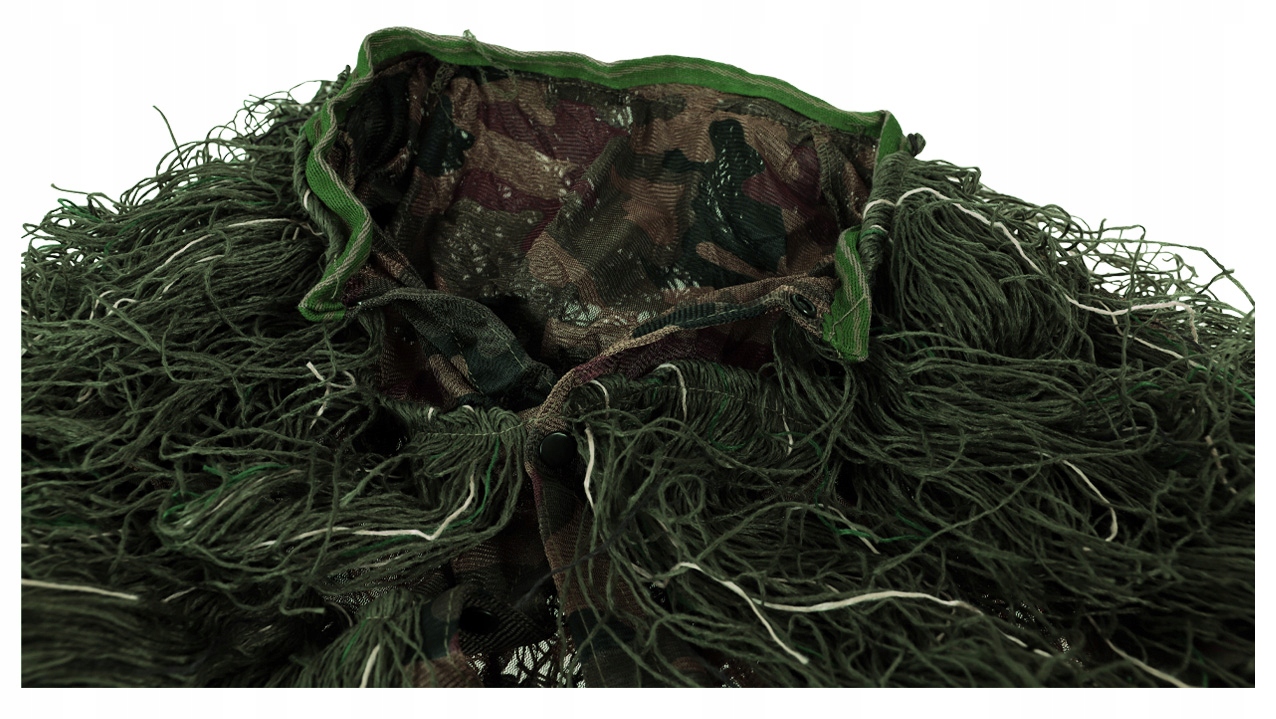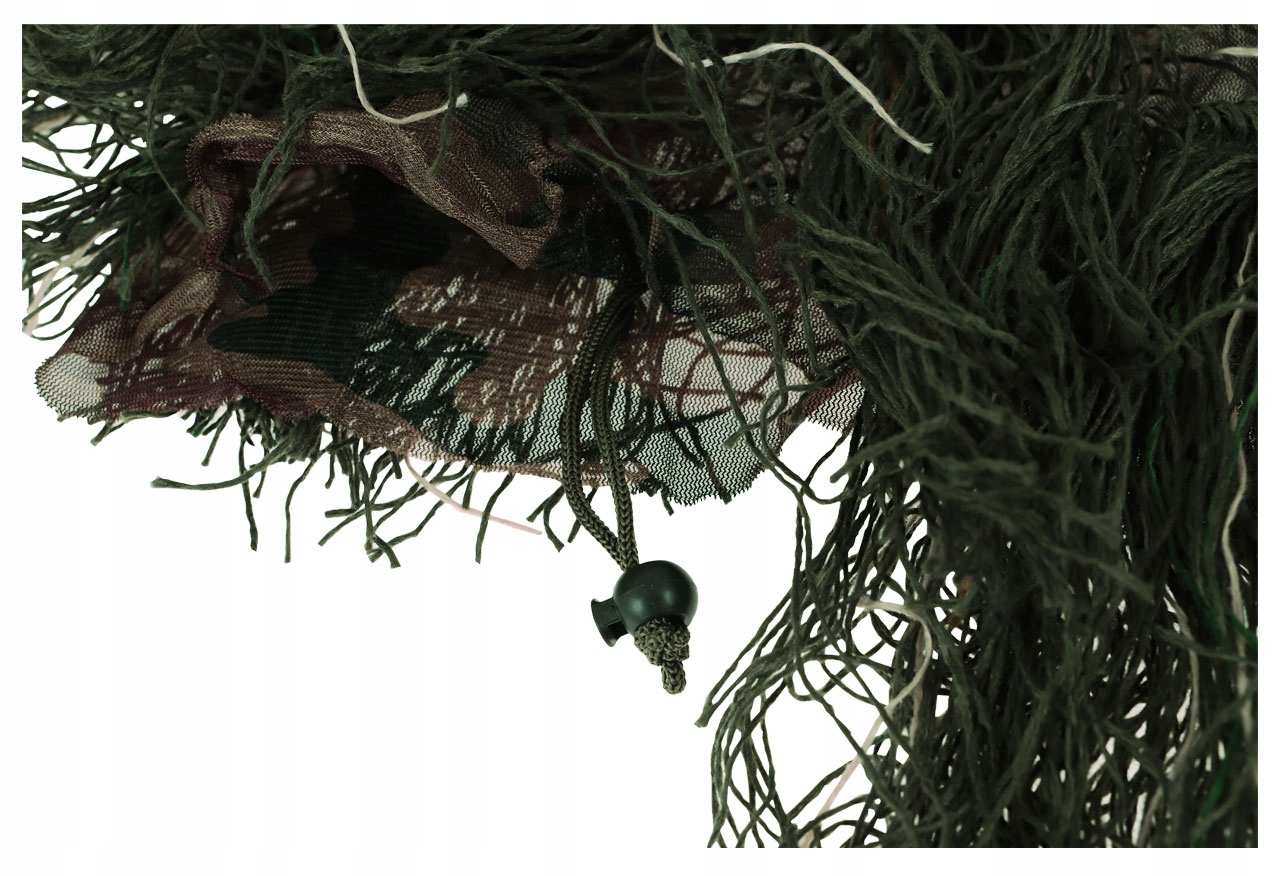 Камуфляжний комплект Ghillie Suit виробництва компанії DOMINATOR®, що складається з сітчастих штанів, толстовки, головного убору та камуфляжу для зброї, на якому хаотично розміщені шматочки пряжі різної довжини. і відтінки. Одяг створює приголомшливий ефект, неможливо знайти сховану людину на землі чи в лісовій місцевості навіть з невеликої відстані.