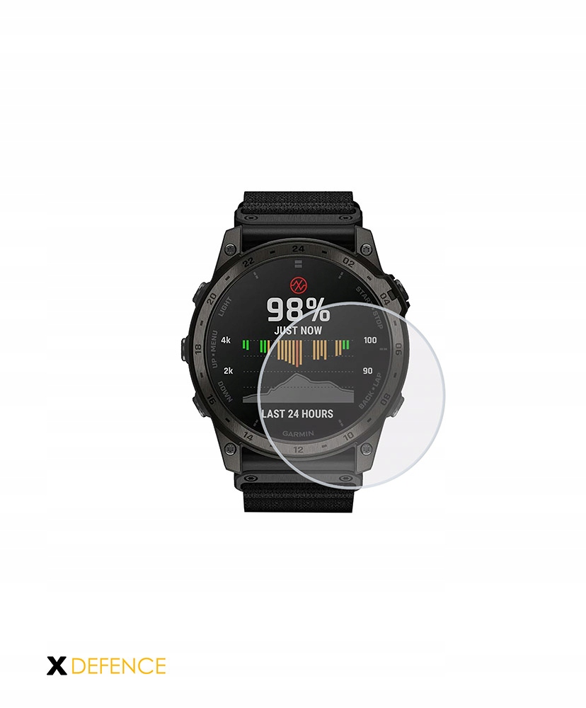 xDefence Hybrid Glass відрізняється найвищою стійкістю до подряпин, оскільки використовували інноваційні керамічні покриття, що надає справжню твердість 7 -го області. Гнучке захисне скло має товщину 0,18 мм. Гібридне скло XDefence - це безпечне, гнучке скло нового покоління , яке, завдяки використанню керамічних покриттів, створює враження від відсутності додаткового захисного шару на дисплеї Garmin Tactix 7 Amoled Edition.
