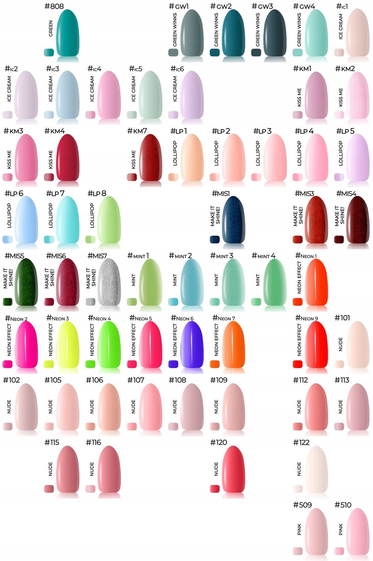 При виборі кольорів у повідомленні продавцю вказуйте точні номери кольорів (без назви колекцій), які знаходяться у верхньому лівому куті кожного кольору лаку для нігтів. Це значно прискорить процес виконання замовлення.