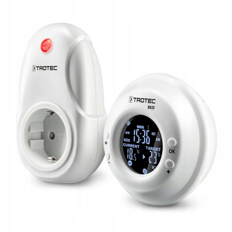 Набір BN35 складається з радіомережевої розетки та радіотермостата. Просто підключіть радіорозетку до настінної розетки та підключіть електричний пристрій до радіорозетки. За допомогою радіотермостата ви можете дистанційно встановити бажану температуру ввімкнення або вимкнення. Радіотермостат вимірює кімнатну температуру у вашому поточному місці та відповідно вмикає або вимикає пристрій опалення або кондиціонування повітря, щоб досягти цільової кімнатної температури. Щойно вибрана кімнатна температура досягне, радіокерований термостат залишає підключений електричний пристрій вимкненим, доки його знову не потрібно буде нагріти або охолодити.
