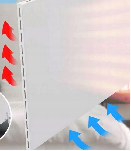 На відміну від звичайного інфрачервоного обігрівача, який нагріває лише предмети та тіла, тут також нагрівається повітря.