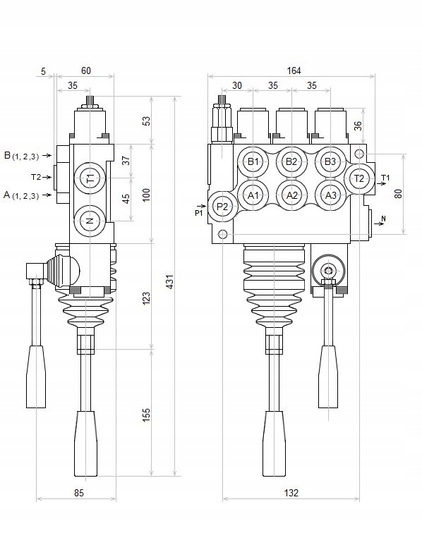 Гідравлічний дистриб'ютор 3 розділи 40L з джойстиком